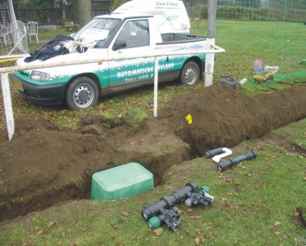 Krásně zelený, hustý trávník je skvělou vizitkou všech sportovních hřišť. Ať už fotbalových, golfových a mnohých jiných. Tráva a jiné povrchy, např. antukové jsou při sportech hodně namáhány a potřebují zvláštní péči a závlahu. Tu jim může poskytnout jen náš kvalitní a moderní, automatický zavlažovací systém. Každý zavlažovací postřikovač, který tvoří zavlažovací systém, obsahuje trysku, která se dá libovolně nasměrovat a regulovat. Můžete nasměrovat její délku i úhel postřiku. Zavlažovací systém na hřištích je propojen potrubím a spojkami, 50cm pod povrchem. A tak nevyčnívají a jsou schované před jakýmkoliv poškozením. Zavlažovací postřikovače jsou navrženy tak, aby vždy byla zavlažena celá plocha hřiště. A tak nemůže dojít k závlaze jen jednoho místa a celá travnatá plocha má dost vody. Neváhejte a nechte si naší firmou dodat automatický zavlažovací systém.