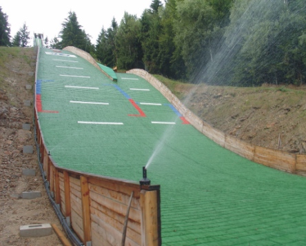 postřikovače R50 na spodmí části doskočiště |