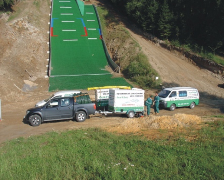 zkouška menších trysek v horní části doskočiště (spuštění