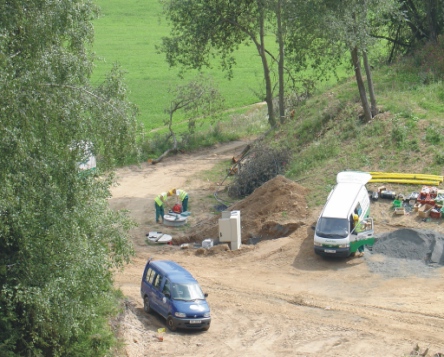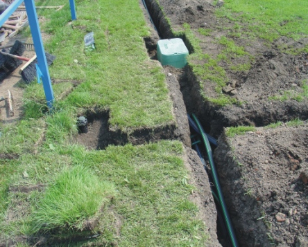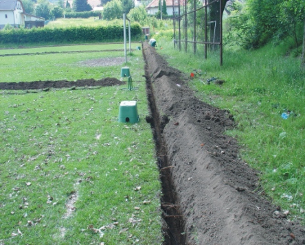 výkop téměř připraven, zelené bedny později ukryjí elektroventily v