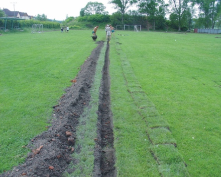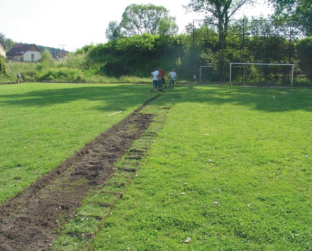 zde se pokládají drny zpět, je nutná pečlivá příprava podloží |