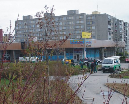 širokoúhlé foto staveniště na Šostakovičově náměstí |