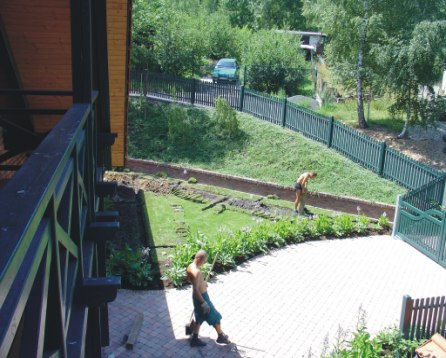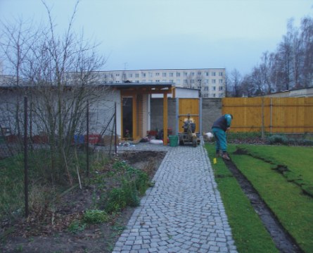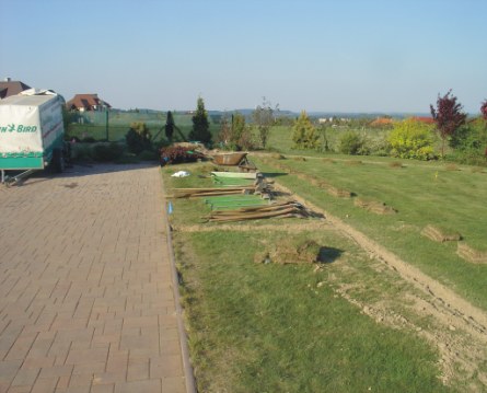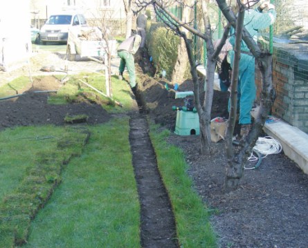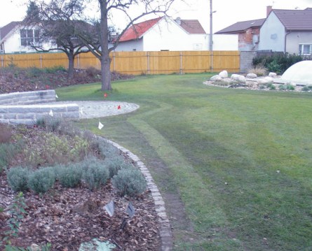 zatímco na pravé straně zahrádky se dolaďují výkopy, vlevo