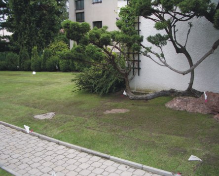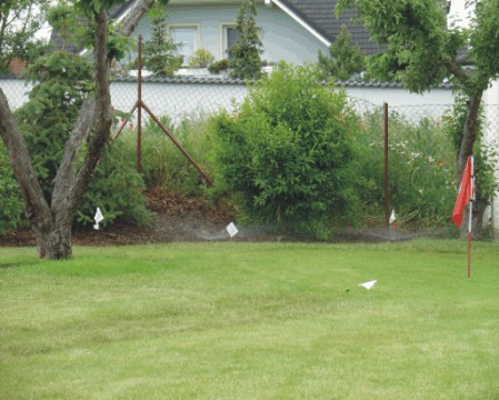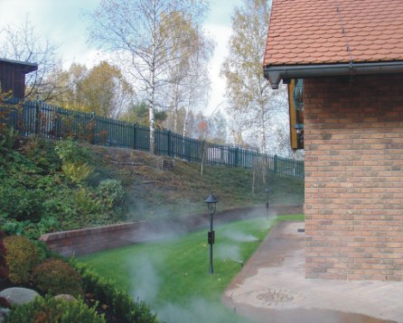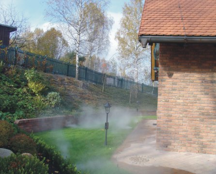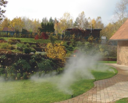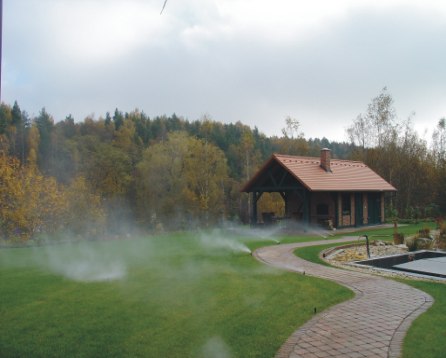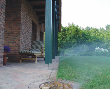 rotační postřikovače 3504SAM, před zahradním domkem |