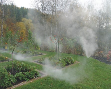 vzdálenější trysky ještě stříkají, ostatní jen syčí. |
