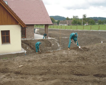 následuje dokonalé zhutnění, pak další vrstva zeminy a... |