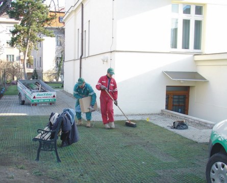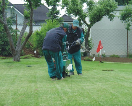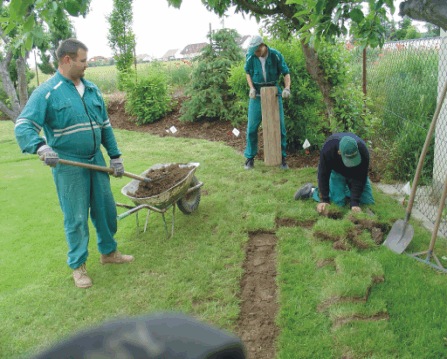 hutnění a usazení drnů je další důležitou operací úklid zahrady |