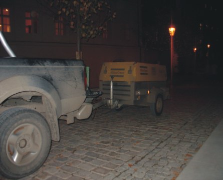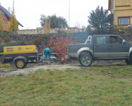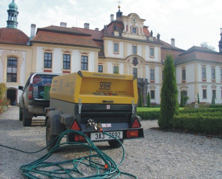 Zámek Jemniště, zazimování závlahy kompresorem |