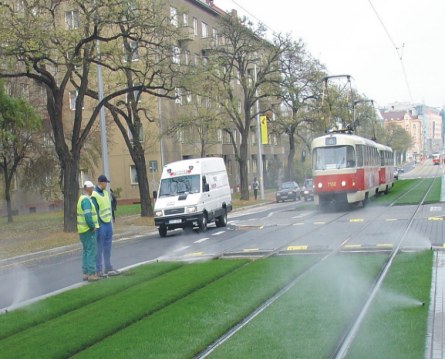 vpředu ještě stříká voda, vzadu už syčí vzduch... |
